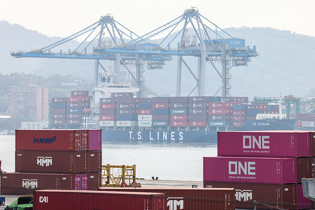 Contenedores de carga y grúas pórtico en el puerto de Keelung, Taiwán, el 9 de abril de 2025. Las acciones y el petróleo volvieron a desplomarse el 9 de abril después de que Donald Trump intensificara su guerra comercial al imponer aranceles superiores al 100 % a China, mientras que medidas drásticas contra decenas de socios de Estados Unidos están a punto de entrar en vigor. (Foto de I-HWA CHENG/AFP vía Getty Images)2. El marco chino: institucionalización de la influencia