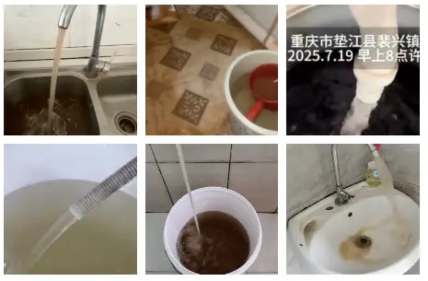 -Chongqing: Imágenes virales mostraban agua negra brotando de los grifos.