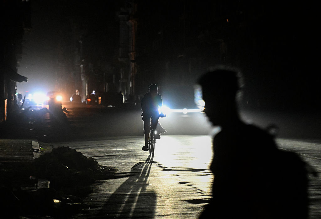 Un hombre monta en bicicleta durante un apagón nacional en La Habana el 21 de marzo de 2026. Un apagón generalizado afectó a toda la isla de Cuba el 21 de marzo de 2026, según informó el Ministerio de Energía, en el segundo apagón nacional en menos de una semana, mientras su red eléctrica sufre las consecuencias del bloqueo petrolero estadounidense. (Foto de Yamil LAGE / AFP vía Getty Images)Cuba solo produce alrededor del 40% de sus necesidades de petróleo. Los generadores de los hospitales, las plantas de bombeo de agua y las ambulancias requieren combustible. Actualmente, solo la mitad de la flota de camiones de basura del país está funcionando. La basura se acumula en las calles, lo que representa un riesgo para la salud. Muchos servicios de autobús se han suspendido y las calles están prácticamente vacías de coches.