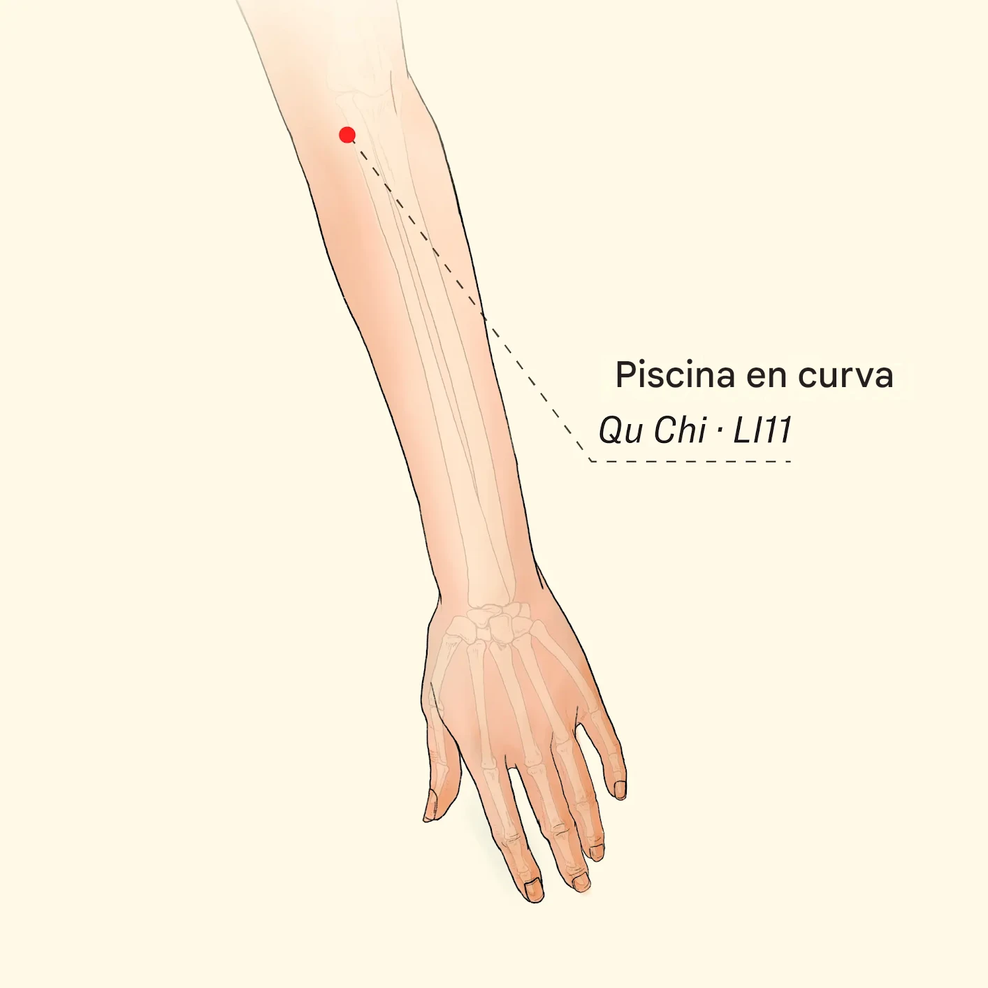 La urticaria puede manifestarse como manchas rojas y con picazón en los brazos mientras duerme. En lugar de rascarse, primero presione ciertos puntos de acupuntura y luego aplique una toalla fría; esto puede aliviar de inmediato más de la mitad de la molestia.Piscina en curva (Punto Qu Chi LI11)