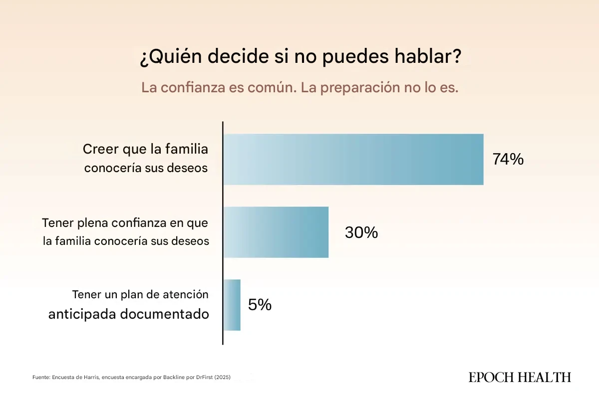 La confianza en la comprensión familiar supera con creces la planificación formal para las decisiones médicas. The Epoch TimesLas directivas efectivas son concisas y claras. Se leen menos como formularios y más como instrucciones personales. Aclaran si el tiempo prevalece sobre la independencia, si la comodidad supera la incertidumbre o si un breve sufrimiento justifica posibles beneficios.
