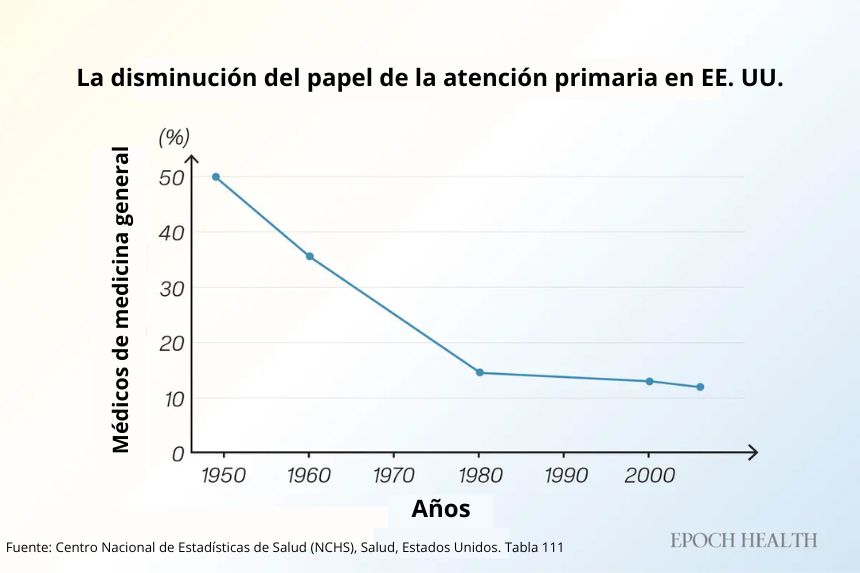 La proporción de médicos estadounidenses que trabajan en medicina general y de familia ha disminuido constantemente desde mediados del siglo XX. (The Epoch Times)La continuidad que una vez definió la atención médica
