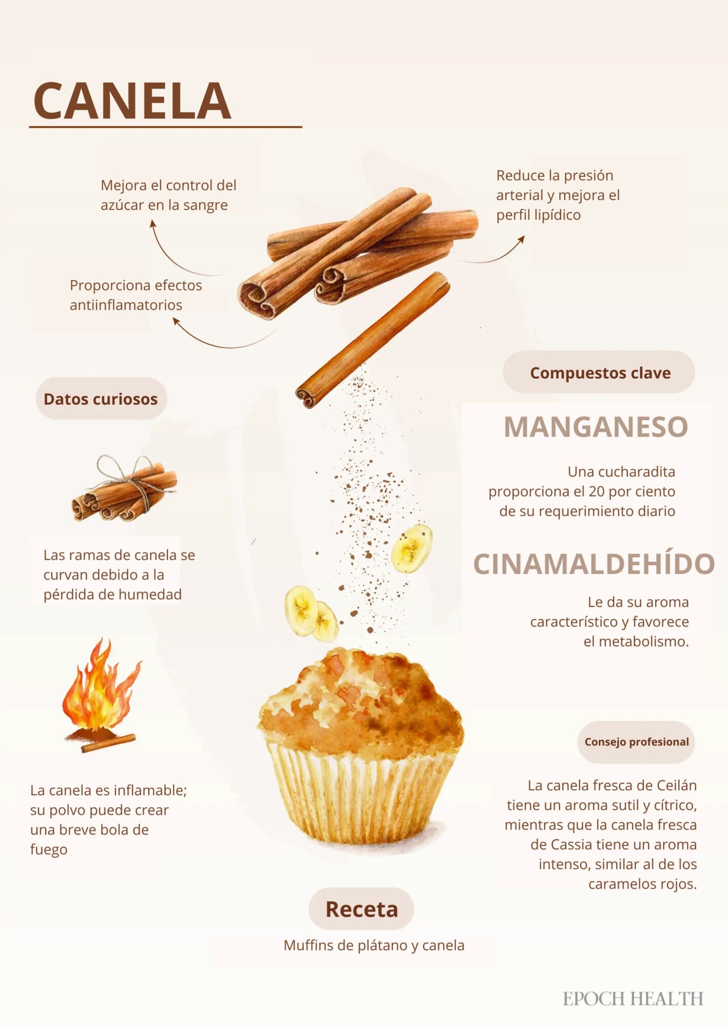 Cinamaldehído: El principal compuesto activo que le da a la canela su característico aroma y sabor. Más allá de su aroma, es un potente agente metabólico.