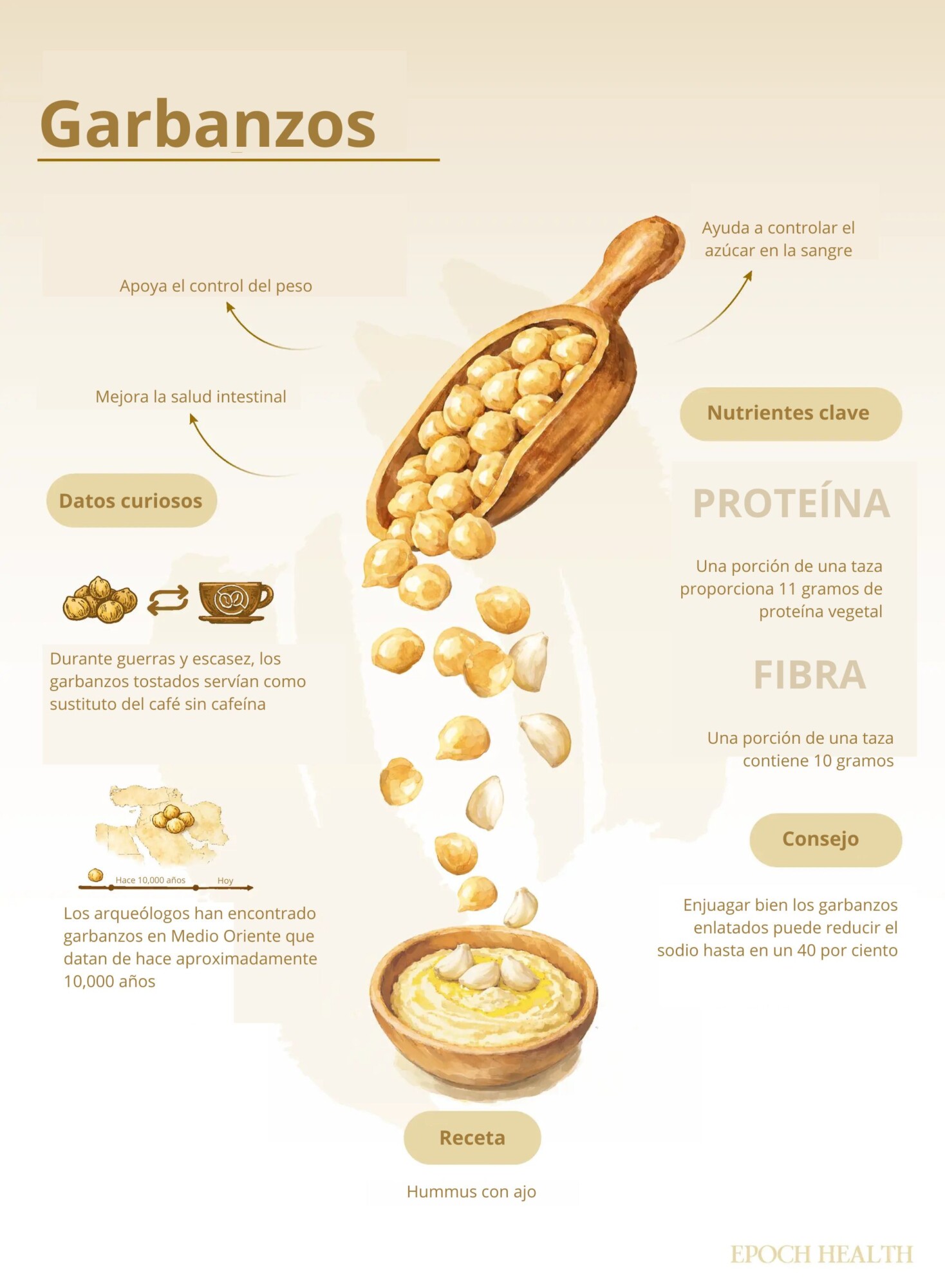 Los garbanzos aportan una variedad de nutrientes que favorecen el control de la glucemia, el control del peso y la salud intestinal.