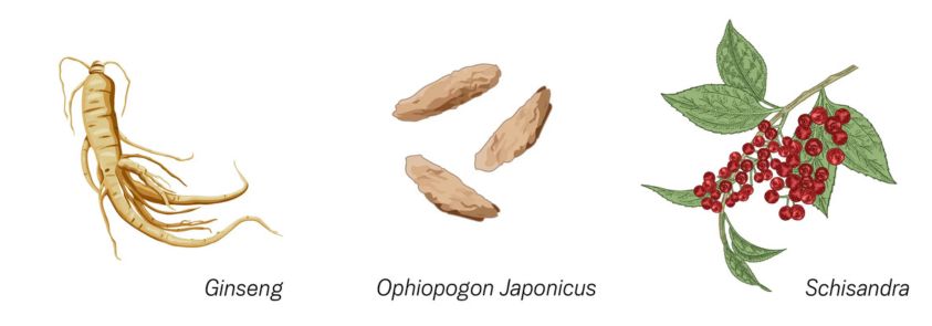 -Schisandra (Wu Wei Zi): Reduce la sudoración excesiva, lo que ayuda a evitar la deshidratación y la pérdida de fluidos corporales esenciales.
