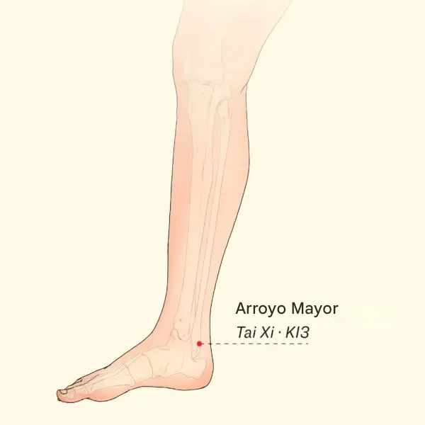 The Epoch TimesEncuentre el punto de acupuntura Gran Arroyo (Taixi, K13): este punto se encuentra en la depresión entre la punta del maléolo medial y el tendón de Aquiles. Masajee suavemente o presione firmemente por ambos lados. Este poderoso punto meridiano del Riñón puede brindar un alivio rápido durante un ataque y, si se usa con regularidad, favorece la salud renal, ayudando a eliminar el ácido úrico y a prevenir futuros brotes.