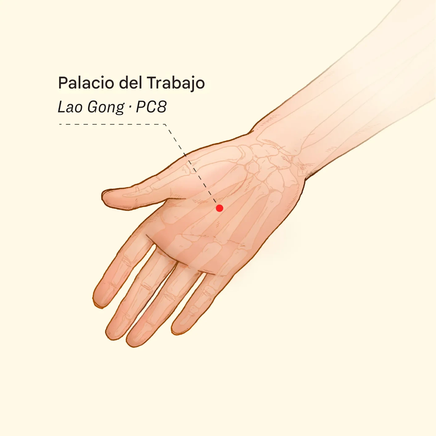 The Epoch TimesLao Gong (PC8): Ubicado en el centro de la palma, en el punto donde la punta del dedo medio toca la palma cuando la mano se cierra en puño.