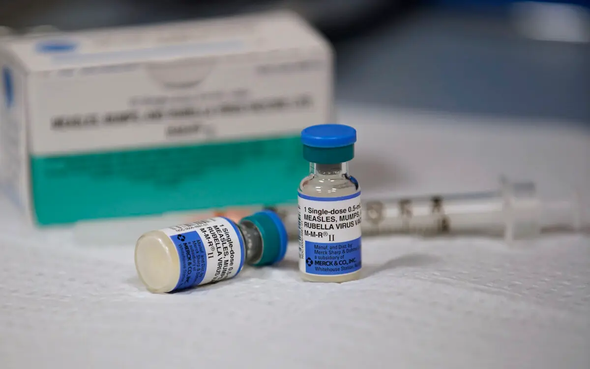Frascos de vacunas contra el sarampión, las paperas y la rubéola se encuentran en un mostrador del Departamento de Salud del Condado de Salt Lake, Utah, el 26 de abril de 2019. (George Frey/Getty Images)Los CDC estiman que una dosis de la vacuna contra el sarampión, las paperas y la rubéola proporciona un 93 % de protección contra el sarampión y que dos dosis confieren un 97 % de protección.