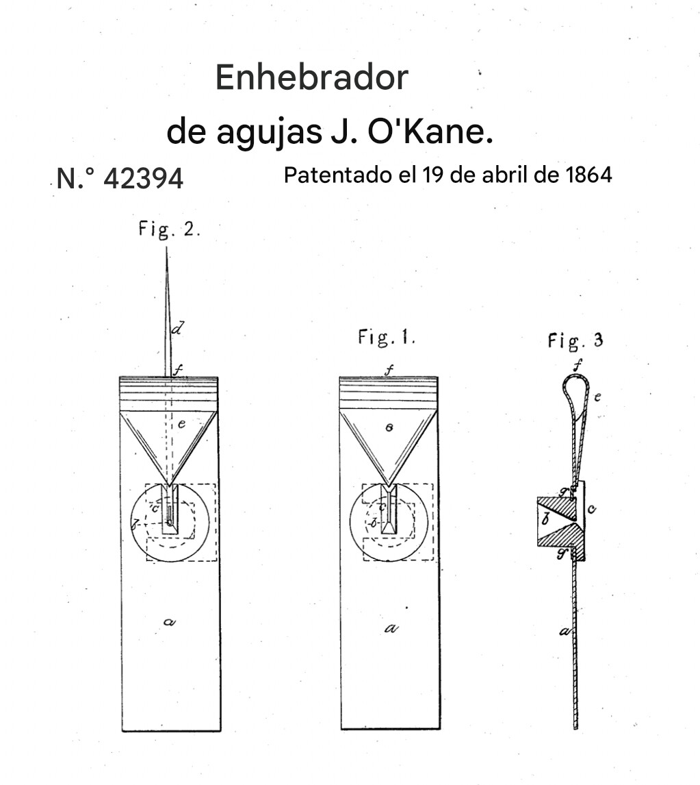 El enhebrador de agujas es uno de los grandes inventos de la humanidad, aunque rara vez se le reconoce como tal. Es similar a la mayoría de los inventos del siglo XIX que pasaron casi desapercibidos. La primera patente estadounidense documentada específicamente para un enhebrador de agujas es la patente n.° 42,394, otorgada el 19 de abril de 1864 a nombre de James O'Kane de Nueva York. Su uso lo cambió todo, ya que simplificó enormemente la parte más difícil.