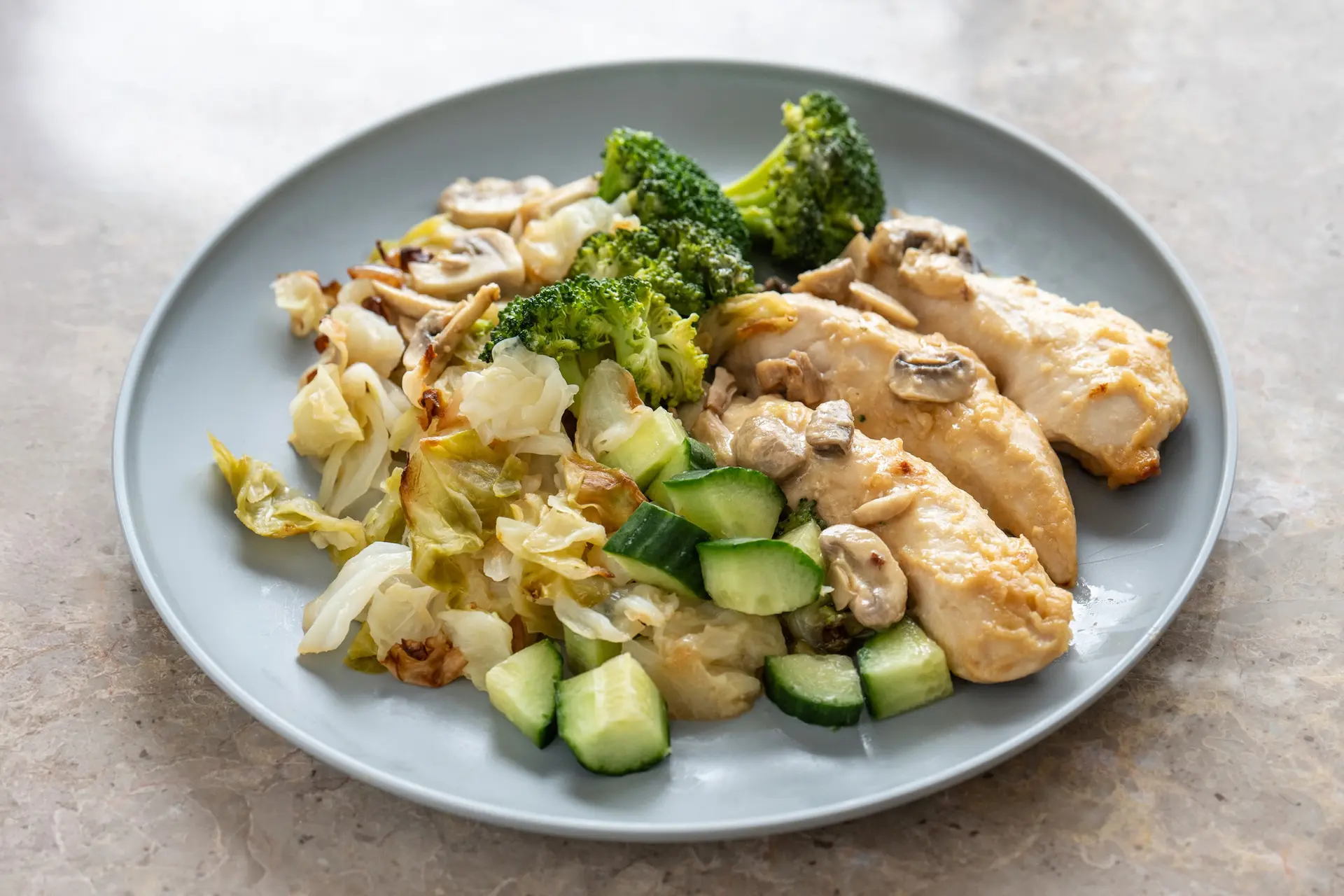 Prepare comidas a base de verduras sin almidón, proteínas magras (pescado, pollo, huevos, legumbres) y pequeñas porciones de cereales integrales o alimentos con almidón. Esta combinación ralentiza la digestión, reduce los picos de azúcar en sangre y ayuda a mantener más estables los niveles de energía y glucosa después de comer.Limite el consumo de bebidas azucaradas, zumos, dulces, pan blanco y aperitivos muy procesados, que pueden provocar picos bruscos de azúcar en sangre.