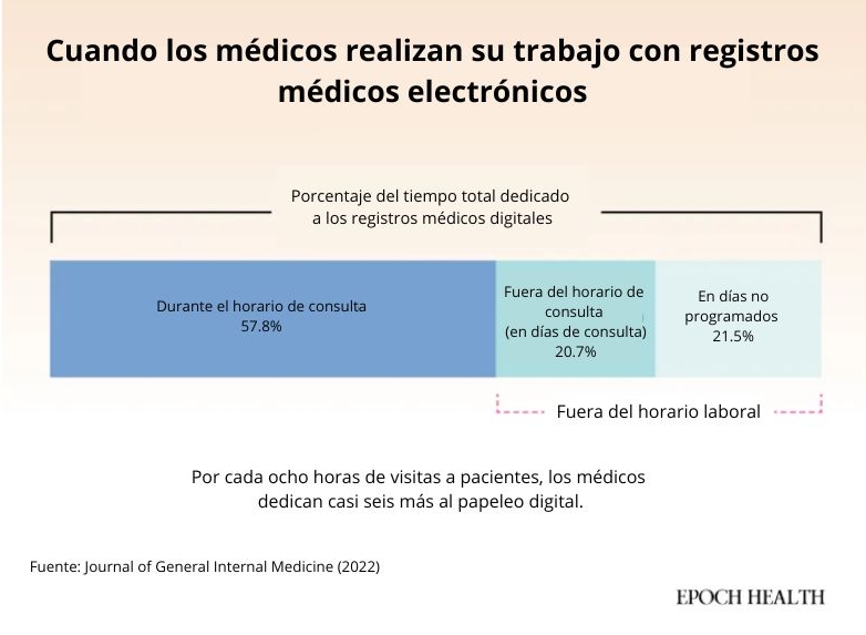 Gran parte del trabajo de los médicos ahora se realiza fuera del consultorio, ya que la documentación se extiende a las tardes y los días no programados. (The Epoch Times)Por qué los fallos no tienen que ver con la culpa