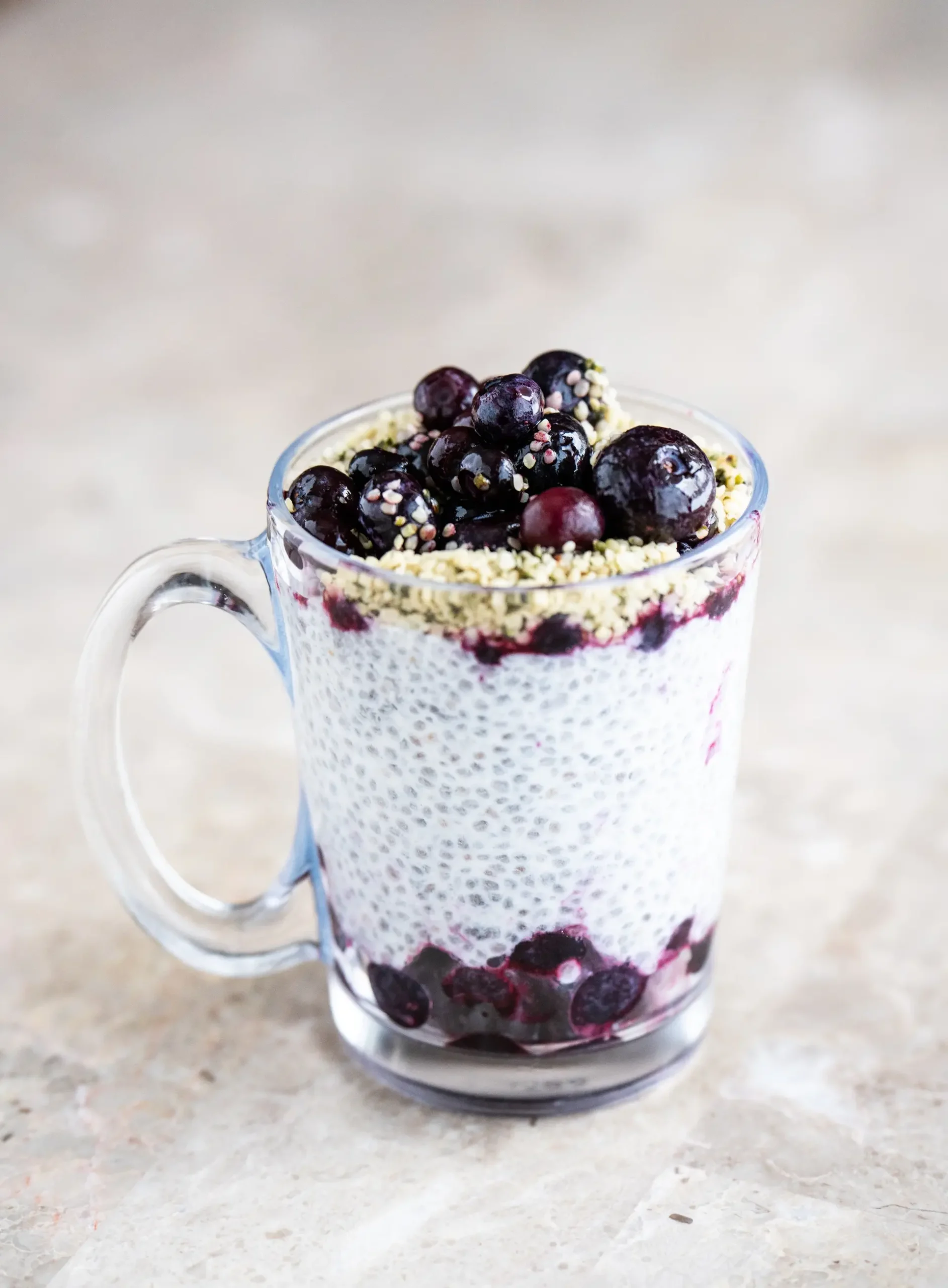 Pudín de semillas y yogur de frutos rojos. (Samira Bouaou/The Epoch Times)Rinde: 1 porción