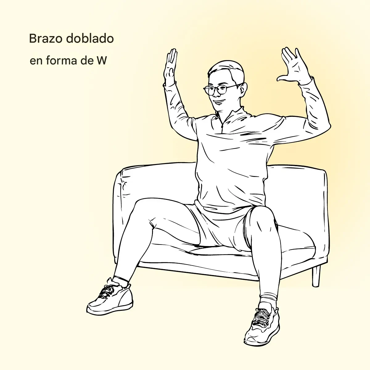 - Doble los codos formando una W, junte los omóplatos y levante el pecho.