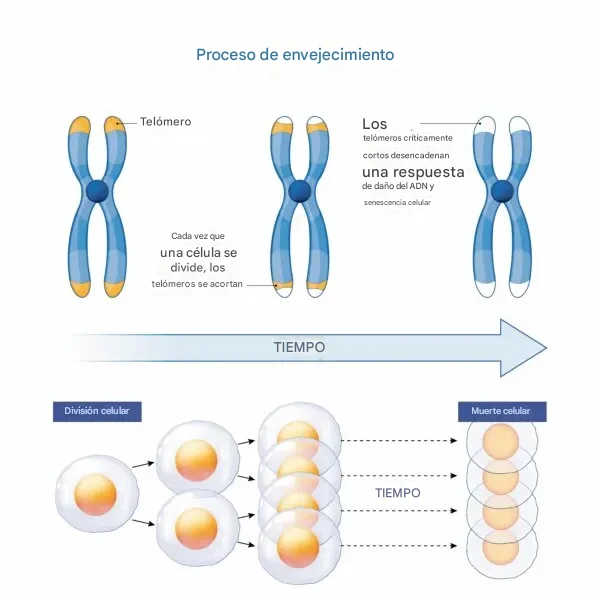 Para comprender qué nos hace envejecer o mantenernos relativamente jóvenes para nuestra edad, primero debemos poder medir nuestra edad biológica. Uno de los primeros métodos para hacerlo, identificado hace unos 30 años, relaciona el envejecimiento con los extremos de nuestros cromosomas, conocidos como "telómeros".Los cromosomas son 46 estructuras largas y filamentosas que se encuentran en los núcleos de nuestras células y que contienen toda la información genética que hemos heredado de nuestros padres.