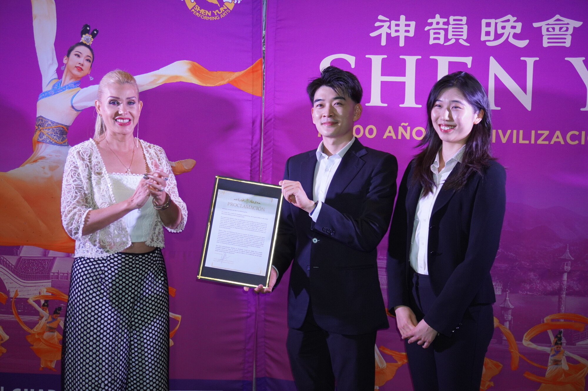 "Su misión de revivir la esencia de cinco mil años de cultura, arte y tradición chinos —en gran medida destruidos en su lugar de origen durante el periodo del régimen comunista— es un éxito y digno del más alto reconocimiento. La disciplina, la dedicación y la ética de trabajo que distinguen a su compañía se manifiestan con elegancia, fuerza y una extraordinaria precisión en cada una de sus presentaciones", dice la proclamación.