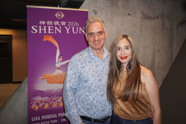 La tarde del 24 de abril de 2026, Mario Canales, director financiero de una empresa financiera, y su esposa, la Sra. de la Fuente, asistieron a la función inaugural de la Compañía Global de Shen Yun en el Teatro GNP Seguros de Monterrey. (Yu Lili/The Epoch Times)El director financiero Mario Canales y su esposa Nancy De la Fuente, quienes también asistieron a la función, dijeron sentirse muy felices de ver la cultura tradicional china en México.