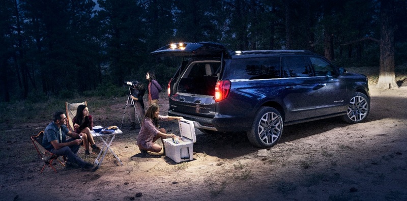 Mediante el sistema de infoentretenimiento, se pueden controlar cuatro zonas de iluminación alrededor del SUV para iluminar los alrededores, lo cual es una característica muy útil para hacer barbacoas, acampadas y otras actividades. El maletero también incluye tomas de corriente para utilizar accesorios o cargar equipos.