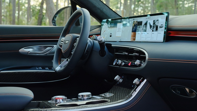 La pieza central es una pantalla OLED panorámica de 27 pulgadas que combina el cuadro de instrumentos de medidores digitales con el infoentretenimiento y ofrece gráficos nítidos y uniformes con un contraste excelente. El Connected Car Integrated Cockpit de última generación, que traduciríamos como “sistema integrado de conexión de la cabina”, mantiene los menús intuitivos y un botón giratorio masivo permite controlarlo sin tocar la pantalla táctil.