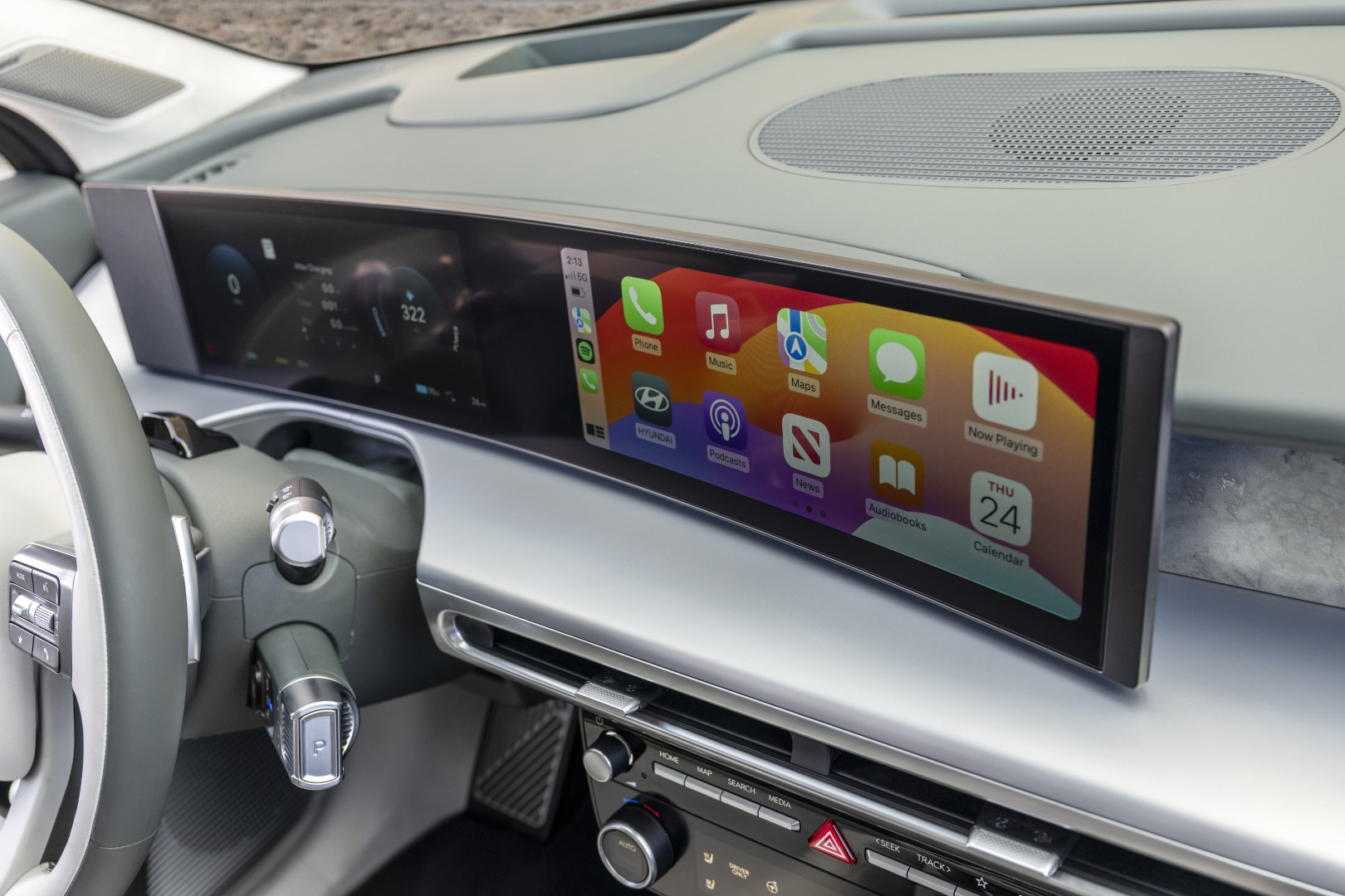 Dos elegantes pantallas de 12,3 pulgadas o 30 centímetros cada una conforman el cuadro de instrumentos y el sistema de infoentretenimiento, en lo que aparenta ser una sola pantalla. La conectividad con Android Auto y Apple CarPlay es inalámbrica y resultó muy fácil el acople durante nuestra prueba. Si bien la integración con el smartphone fue impecable, el sistema de infoentretenimiento a veces responde con lentitud y algunos gráficos parecen anticuados.