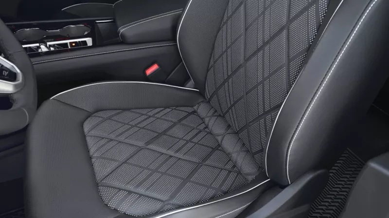 Los asientos firmes tienen buen apoyo y soporte lateral. En el acabado más alto, incluso puedes conseguir asientos de masaje, una característica de lujo que pocos competidores directos ofrecen. Otras características presentes son la calefacción y ventilación de los asientos delanteros, volante calefaccionado, carga inalámbrica para teléfonos y control de clima de tres zonas